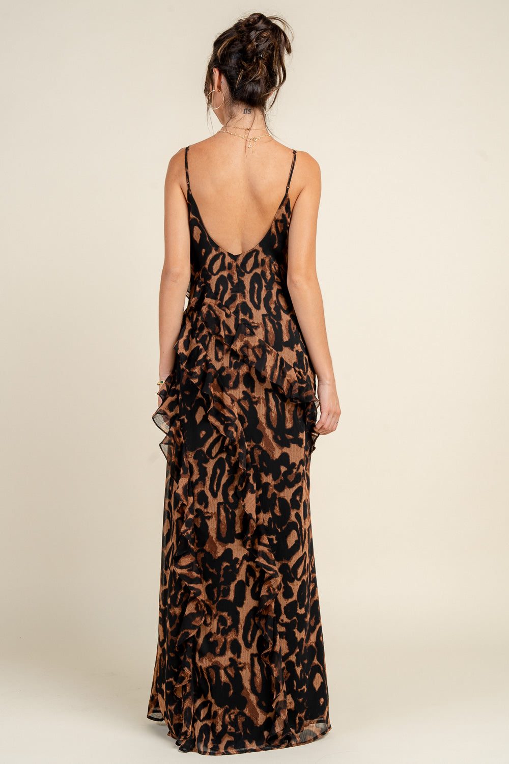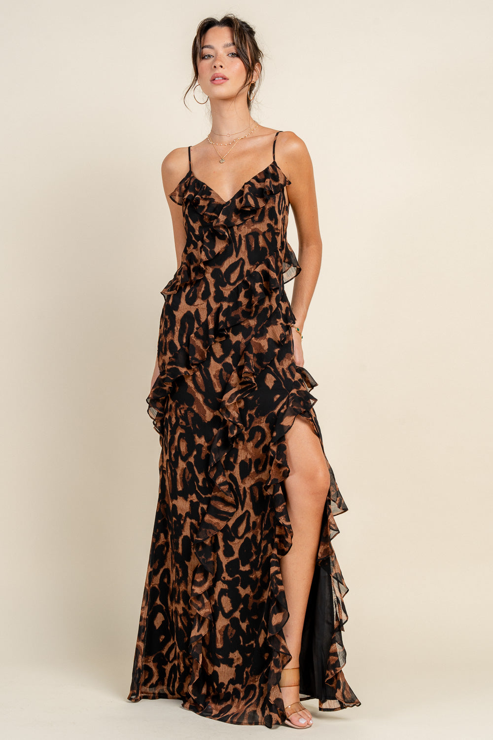 CHIFFON MAXI CAMI DRESS W/ FRILL RUFFLE DETAILS