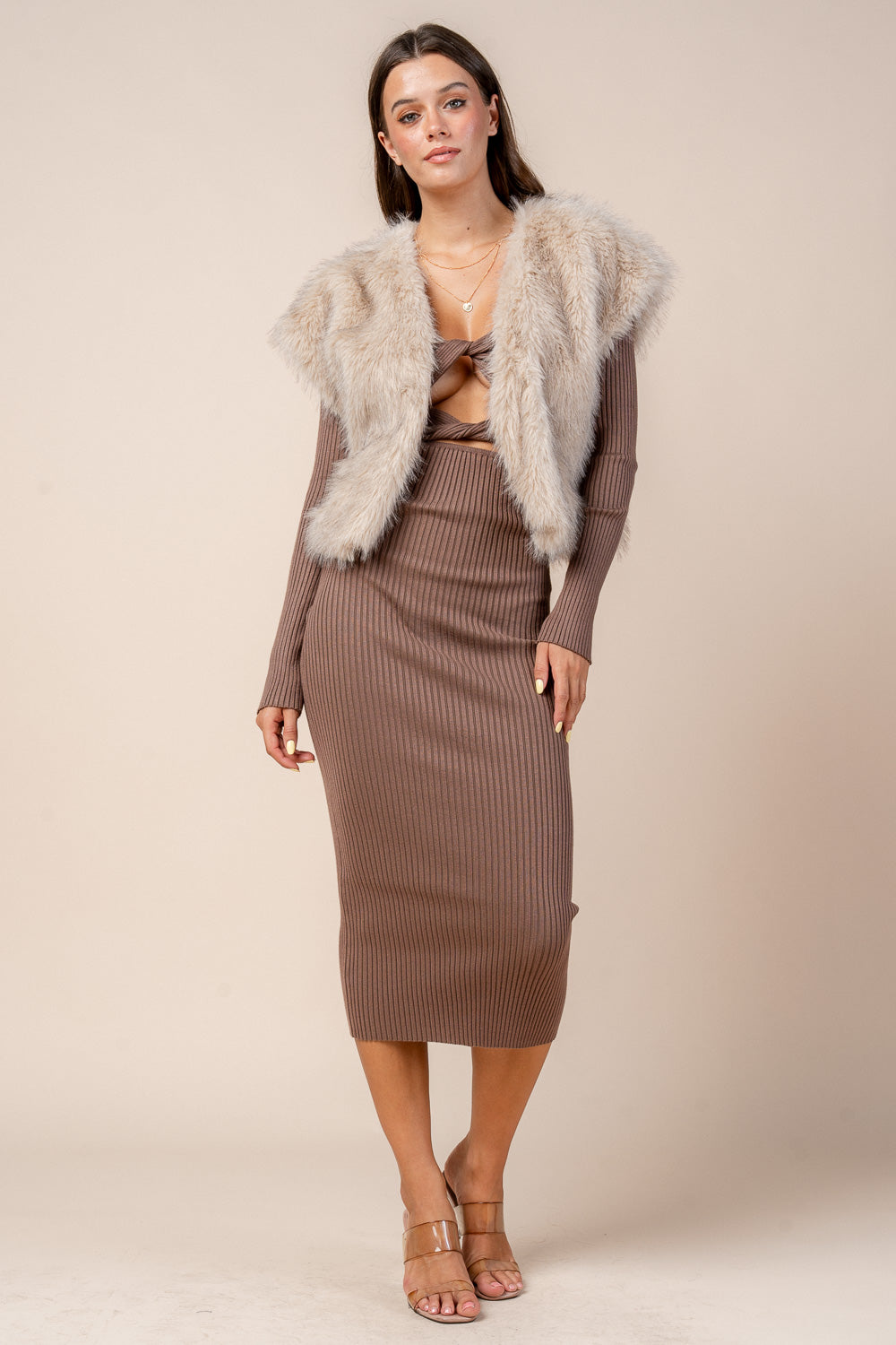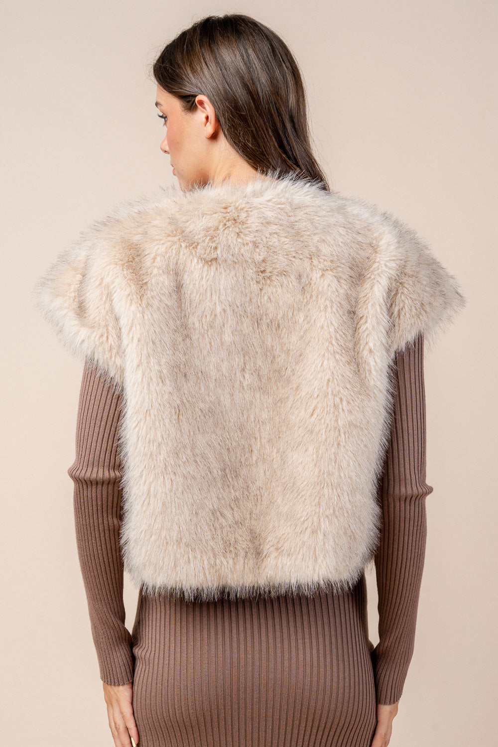 EXTENDED SLEEVED FAUX FUR VEST