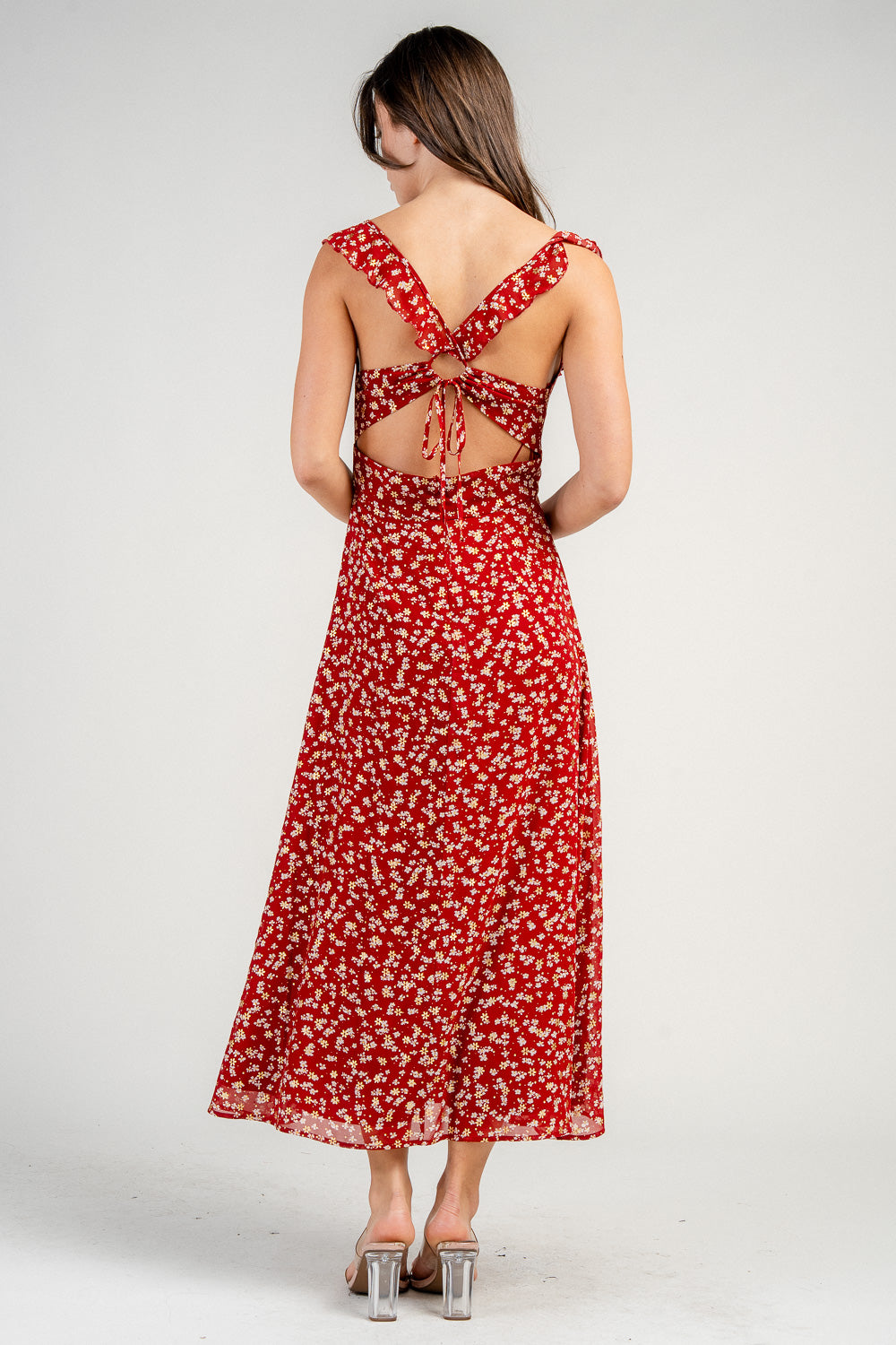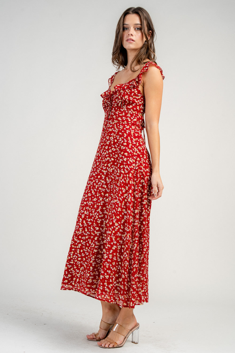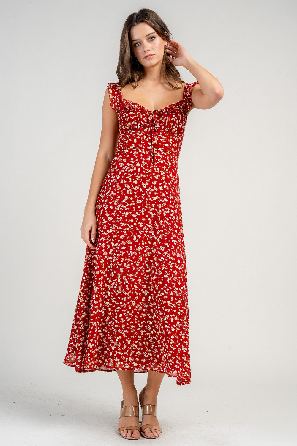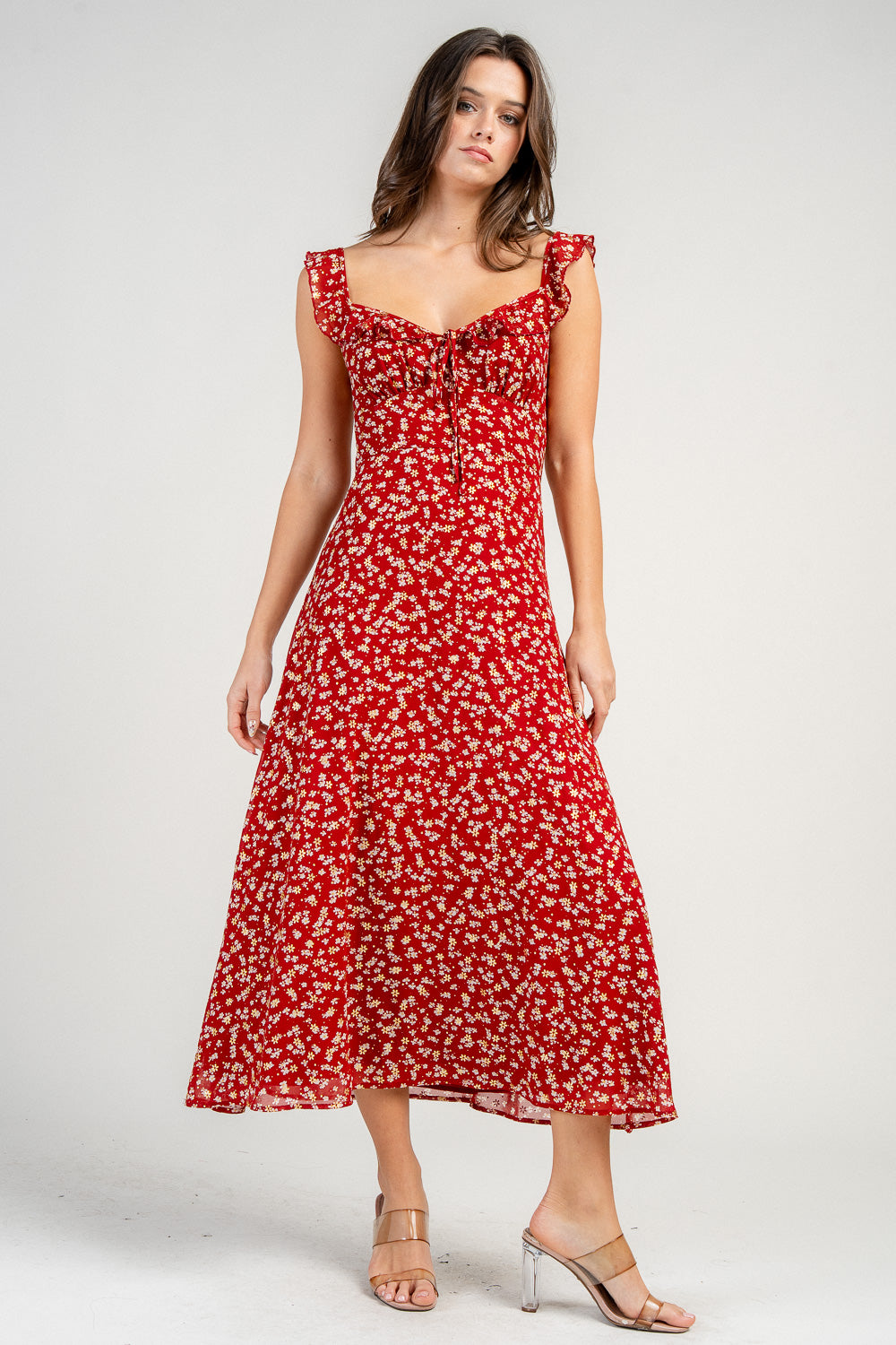 FRILL RUFFLED SHOULDER MIDI DRESS