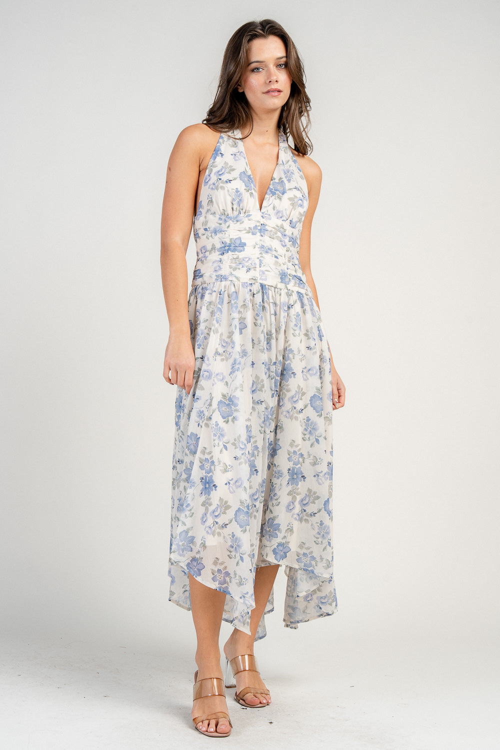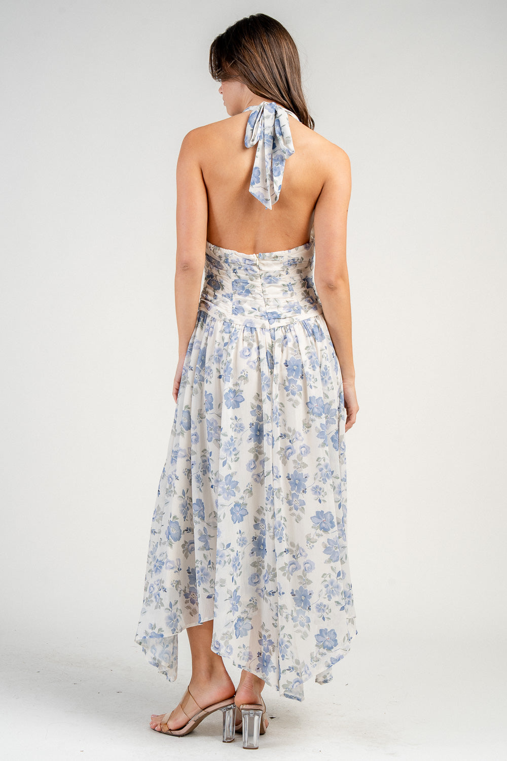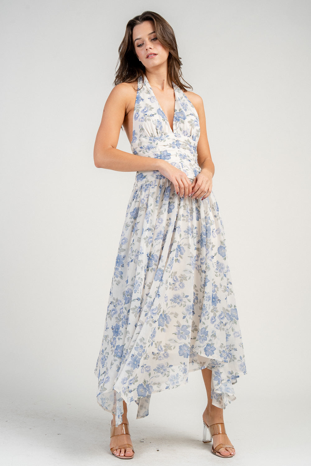 HALTER MIDI DRESS W/ HANKERCHIEF HEM