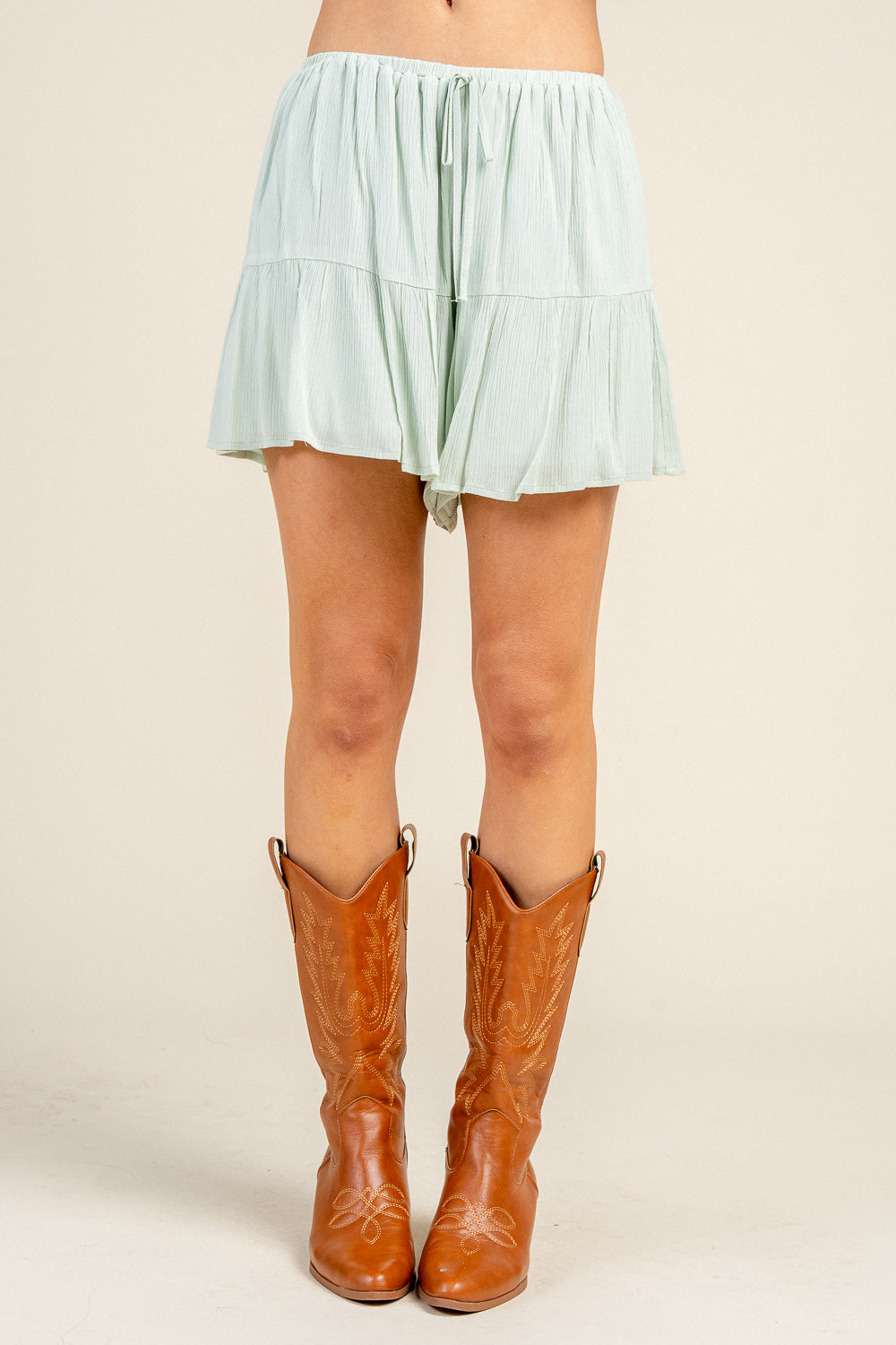 • Tiered shorts with elastic waistband for easy, comfortable wear